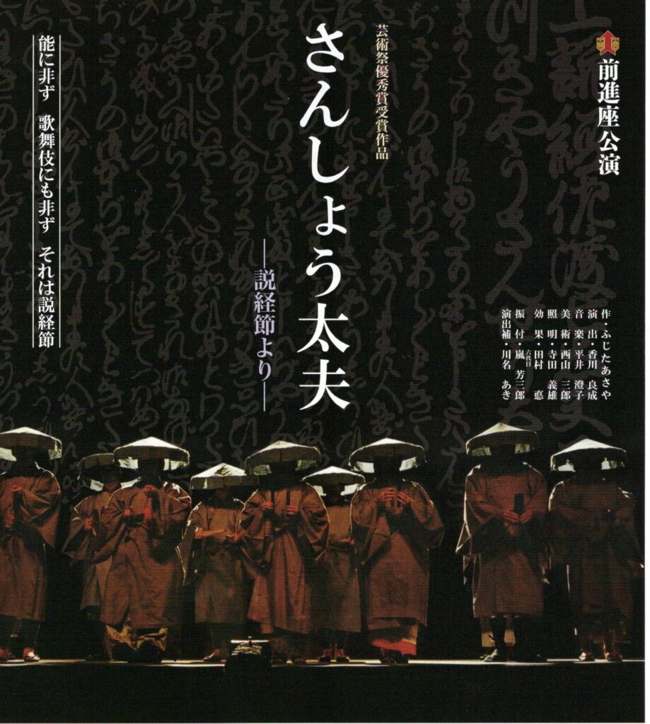 平将門の孫、奥州五十四郡の主、岩城判官正氏は、帝の勘気を被り太宰府に流人の身。あんじゅとづし王は、父を追って京へ向かう道中、人買いに騙され丹後の国のさんしょう太夫に売られ、同行の母とも生き別れてしまう。姉弟は、なれぬ汐汲みと芝刈りに追い立てられ、むごい仕打ちに耐えかねたあんじゅは、づし王を都へと流す。怒った太夫はあんじゅを火責めにして殺してしまう。一方、国分寺の聖に助けられたづし王は無事落ちのび、奥州五十四郡と丹後五郡の国司となる。聖の話で姉の死を知ったづし王は、悲しみと憤りに身を震わせ、さんしょう太夫一門を国分寺の庭に呼び寄せ・・・